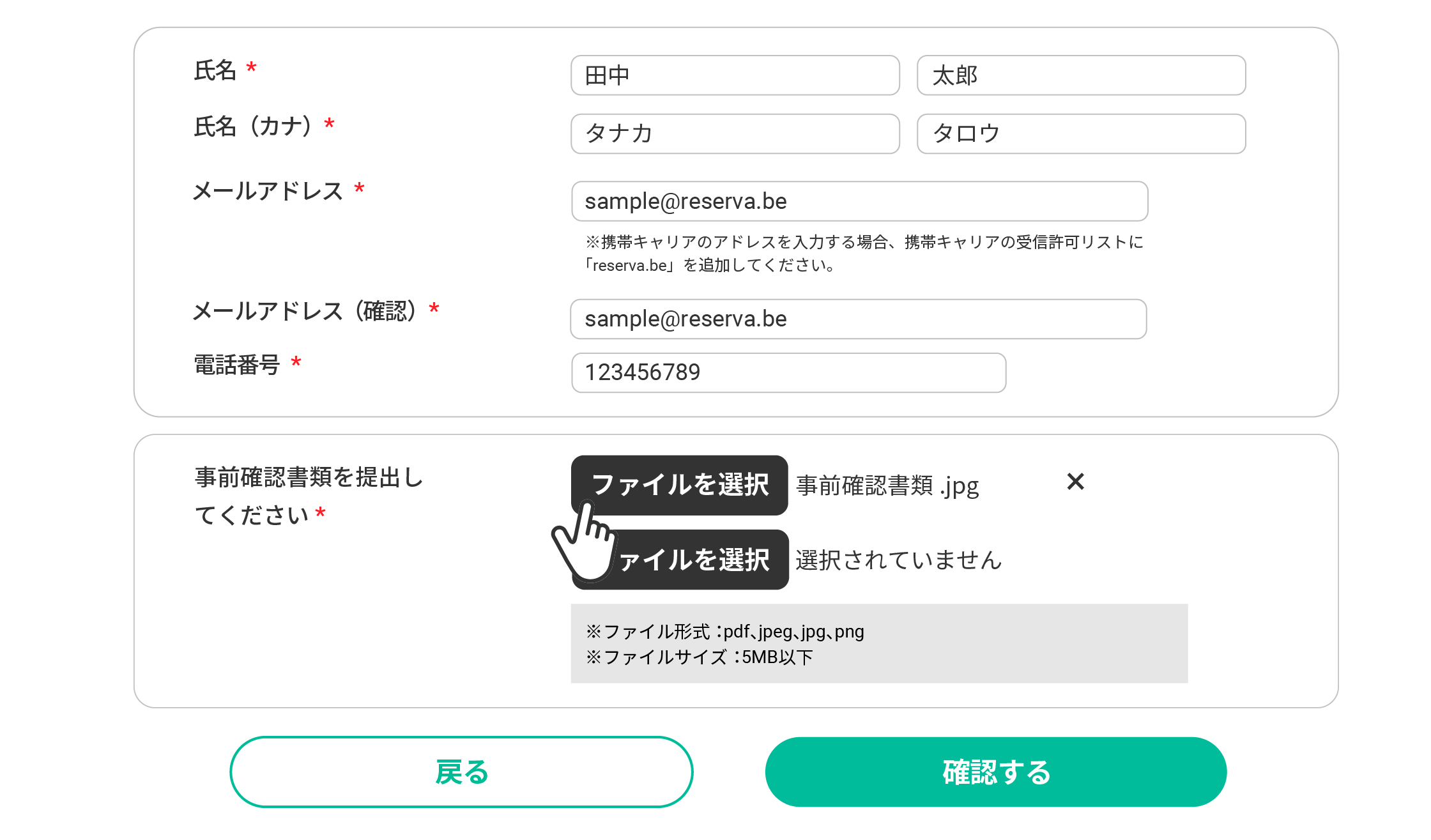 ファイル提出を設定することで本人確認書類などを事前に確認でき、当日スムーズに案内できます。
