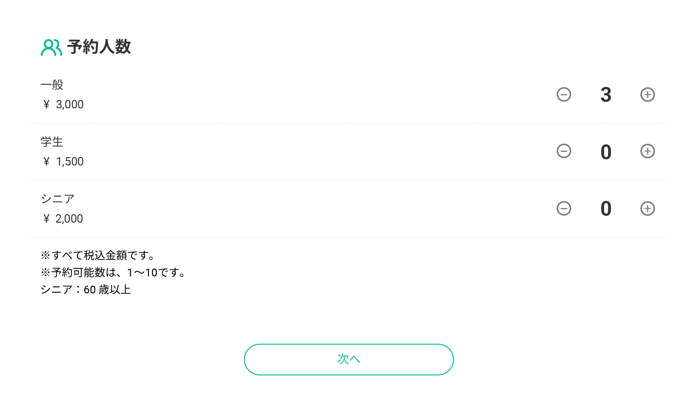 予約メニューごとに複数の料金形態を設定できます。一般・学生・シニア・中学生以下といった予約者の属性によって異なる料金を設定できるため、属性別で予約メニューを作成する必要がなく、管理者の負担軽減に繋がります。施設タイプでは、プレミアム会員・一般会員といった会員種別ごとに料金を指定することもできます。また、料金形態が予約画面上で一目でわかるため、予約者の利便性向上にもつながります。