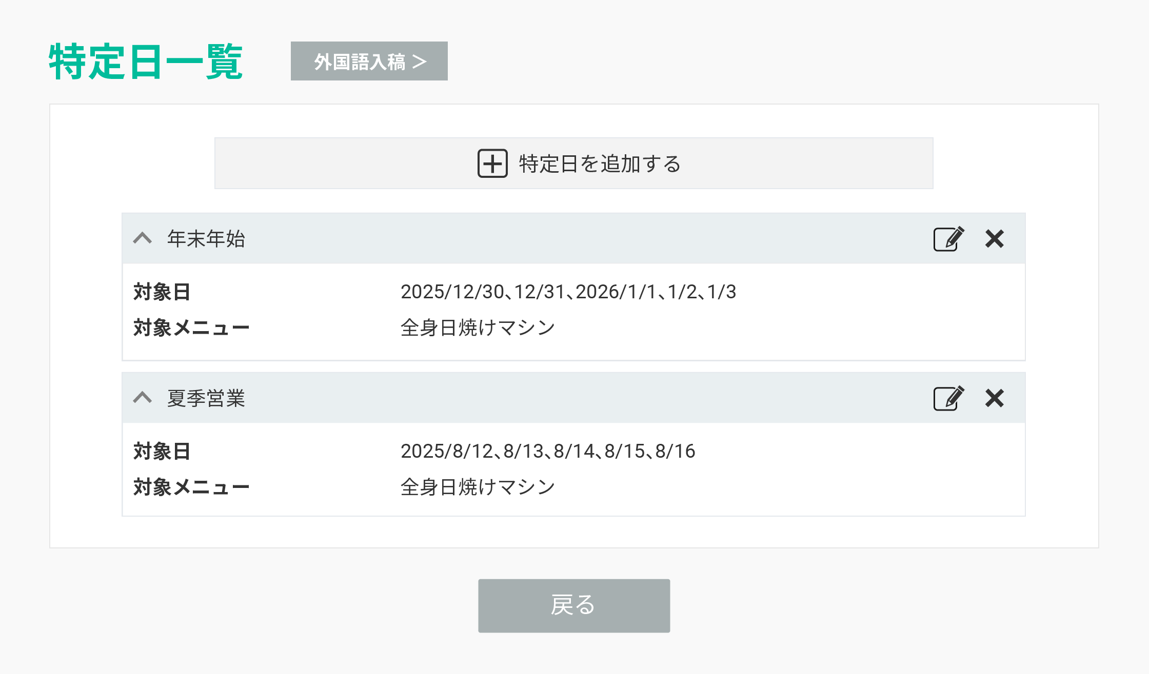 メニューごとに料金を複数設定