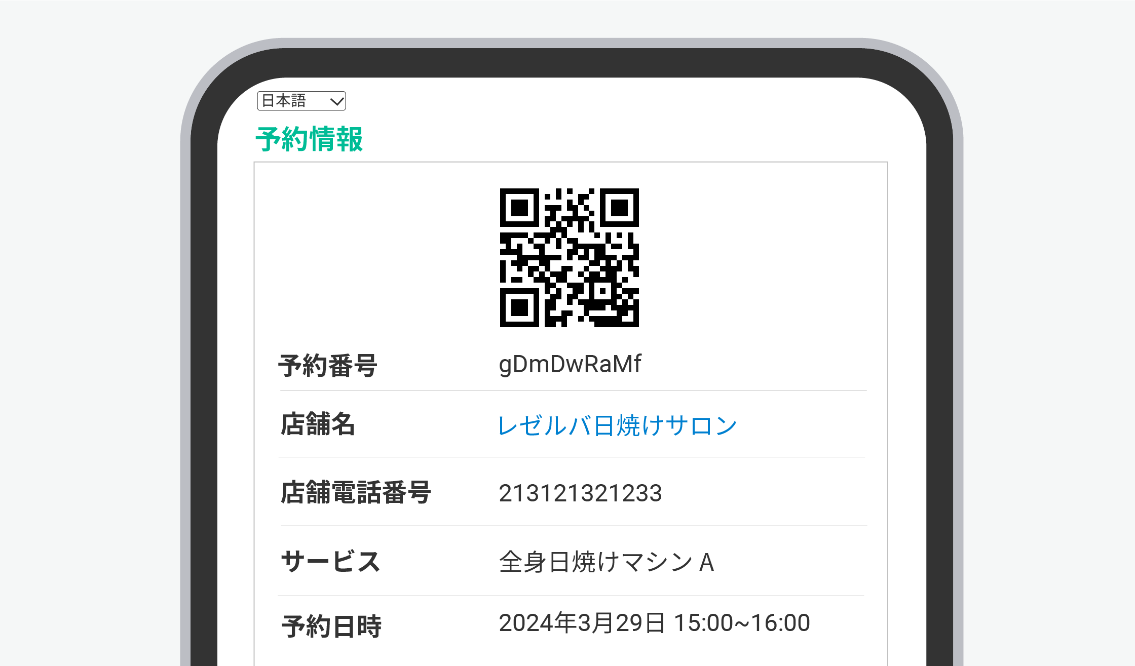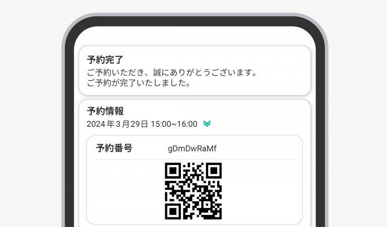 万が一、QRコードが表示できなくても、予約通知メールに記載されたURLから表示できます。メールを開くことになるため、予約者にとっては予約のリマインドにもつながります。