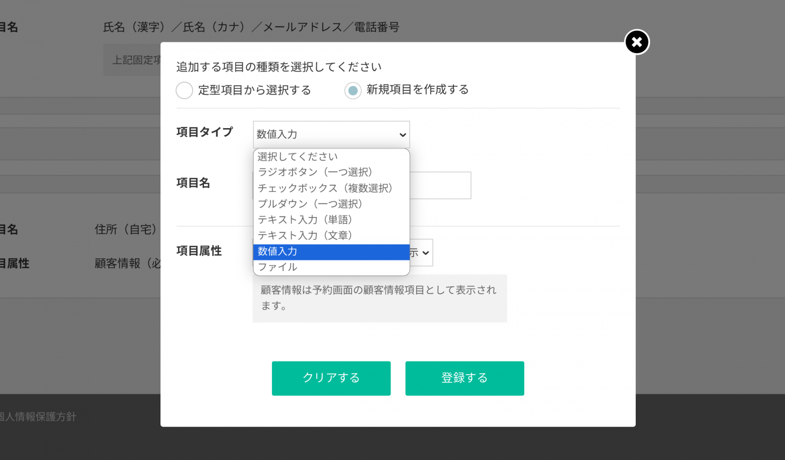 事前に把握したい予約者の情報を質問項目として追加することができます。