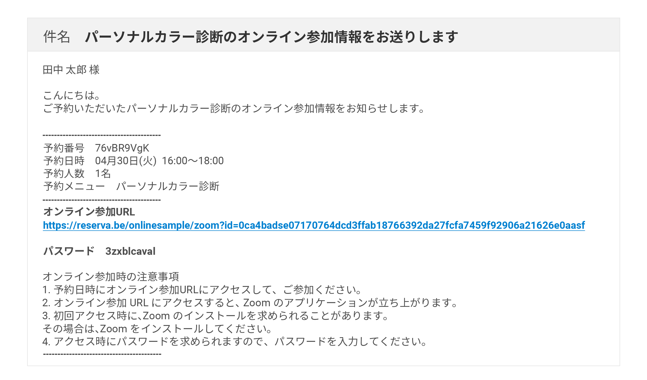 当日の参加URLが自動でメール配信されます