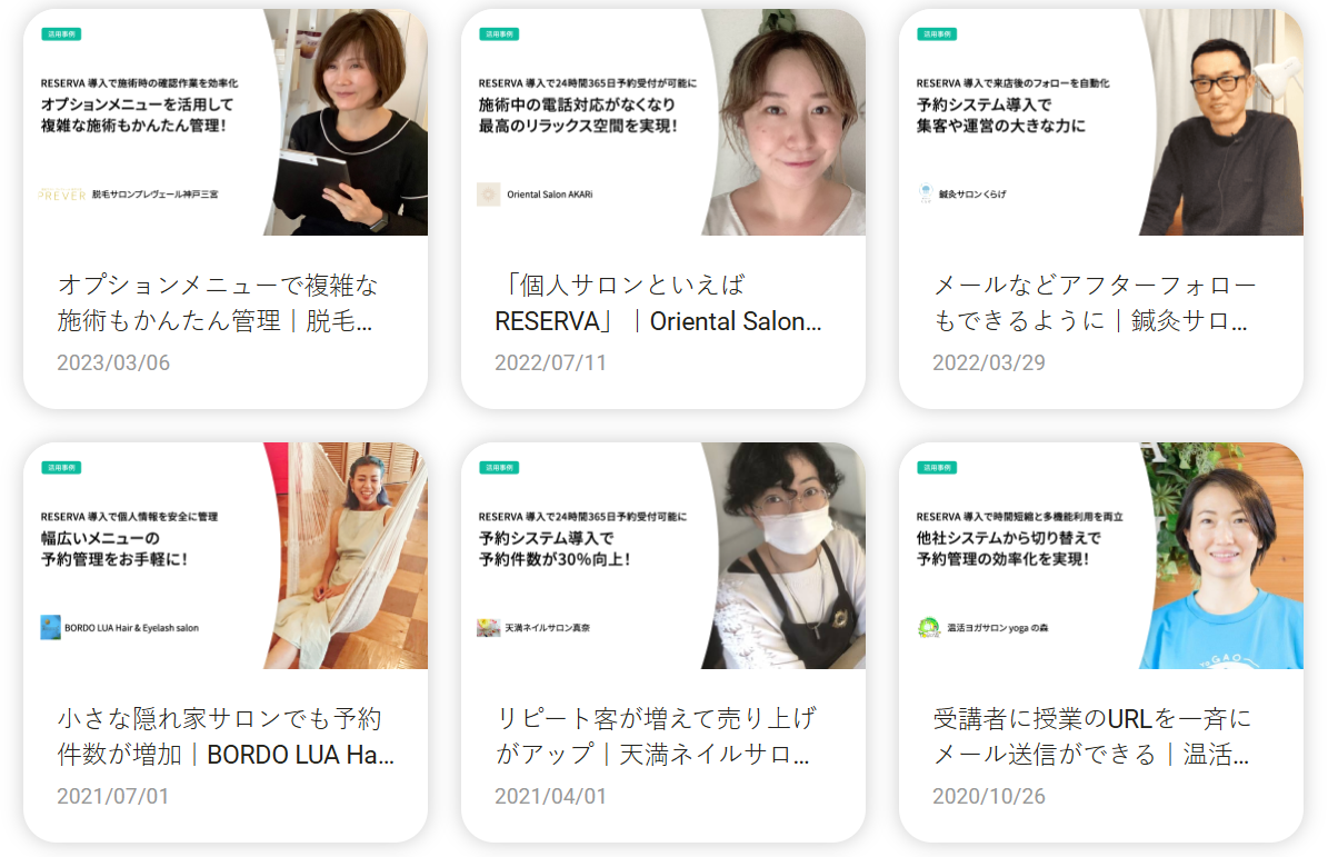 他にも、RESERVAをご利用いただいている美容室・サロンでのRESERVA活用事例をご覧ください。