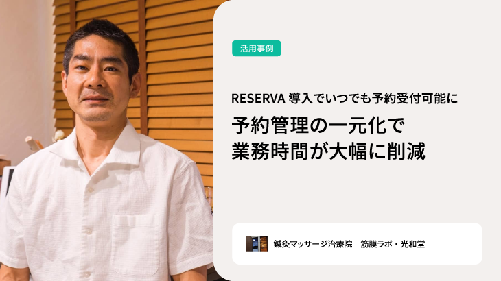 予約管理にかかる時間が大幅に削減|鍼灸マッサージ治療院 筋膜ラボ・光和堂