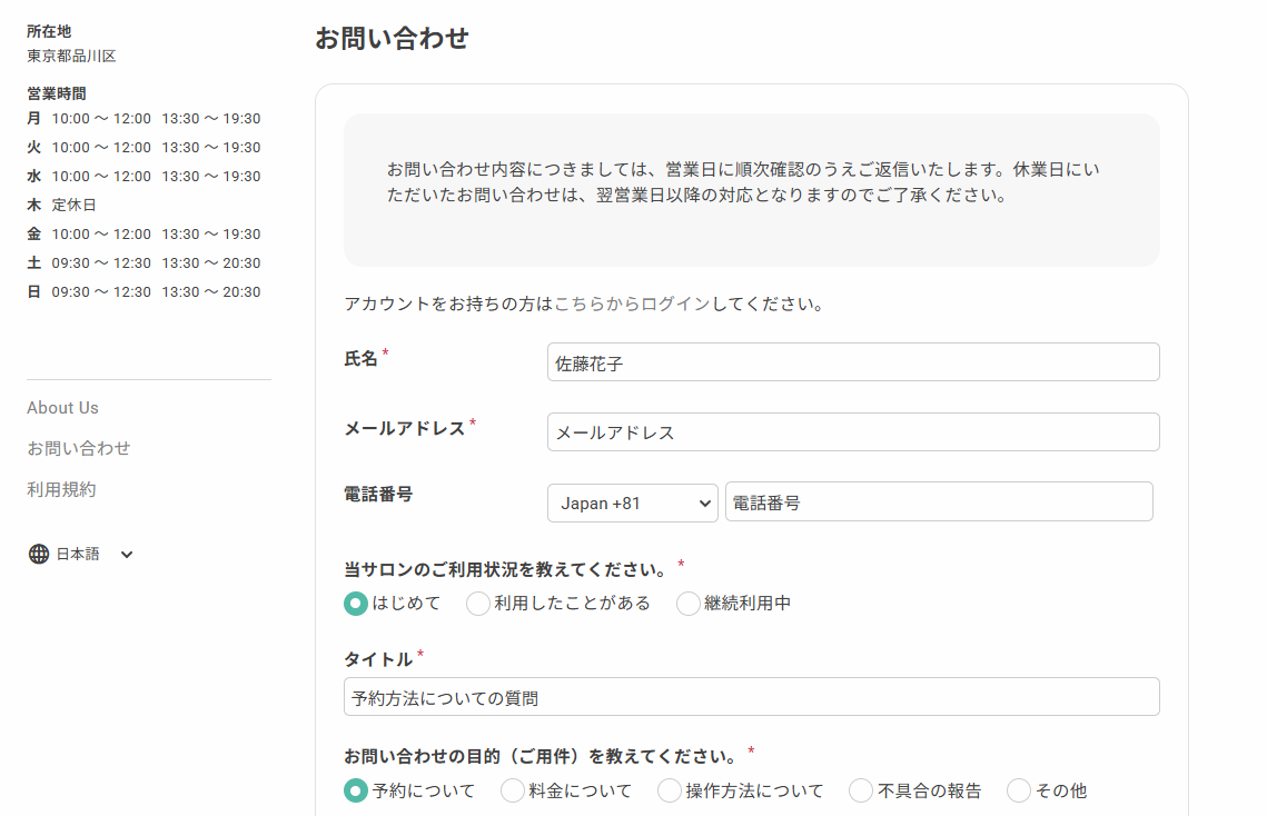 注意事項や回答目安、問い合わせ前の確認事項などを自由に記載することで、ユーザーの利便性と業務の効率を高めることができます。