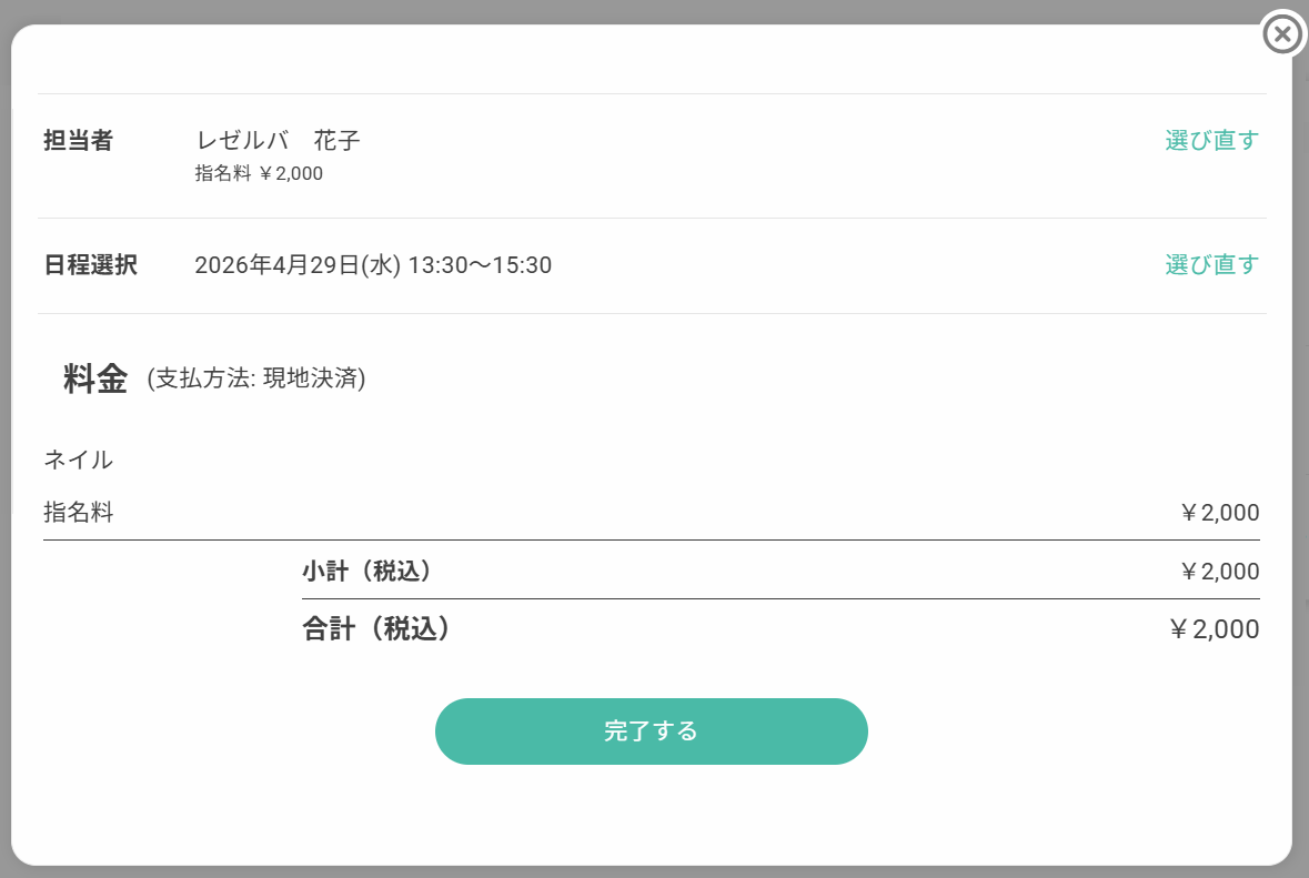 ・予約日時、担当者、人数などを変更できます
