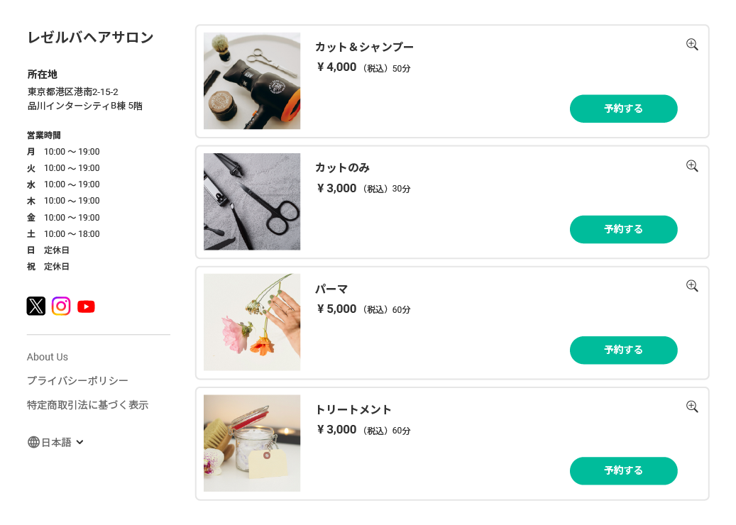 • スタッフごとにメニューを設定できるので、指名予約の管理がスムーズになりました。お客様にも好評です。