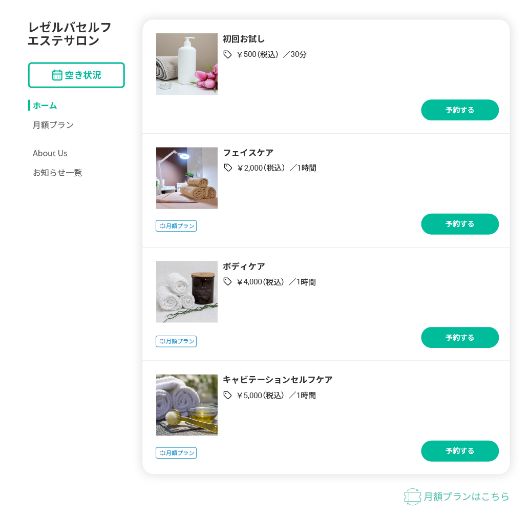 セルフエステ側も当日の会計処理が不要になるため、効率的にセルフエステ運営を行うことが可能です。 -