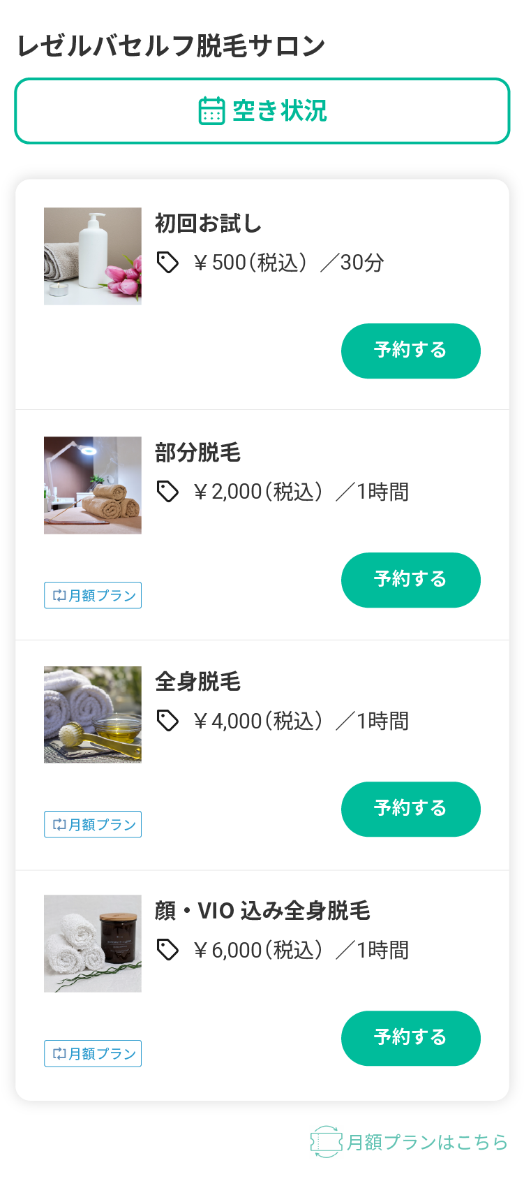 セルフ脱毛側も当日の会計処理が不要になるため、効率的にセルフ脱毛運営を行うことが可能です。 -